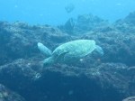 Aozumi:  This site is a garden of massive rock formations.  Most are very cliff-like with ridges and are ideal environments for turtles to rest in and hide away.  We were lucky enough to get extremely close to a huge sleeping adult.  Opening his eyes slowly to take a look at us, he was soon fast asleep again and didn’t seem to mind us passing by.  A curious batfish followed us throughout the dive.  Batfish eat turtle faeces, hardly surprising that he was just as keen as us to get close to the turtles.