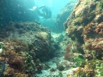 Sanju: Below the water here is an aquarium-like world packed with fish such as white-saddle goatfish, spotted tail morwongs and golden-striped groupers. Sanju is a relatively easy dive site (maximum 20m or so) with much to offer despite appearing to be relatively standard at first glance. Divers descend freely to about 5m of rock teeming with anemones and other critters such as sea goldies twitching over holes and cracks. Spider crabs are also around, stretching their long legs. Down at 12m there are more huge rocks that reach up to the surface, full of fish and anemones. The best part of this dive is the 12-15m area where the sun penetrates best and the water flow is quite smooth making it easy to hover and get some good photos. Doing the safety stop over the rocks makes for better buoyancy control too.