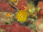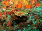 Hiradan Arch: A 5-minute boat ride from one of Kozushima’s main ports , a cluster of rocks in the open sea looks like a promising site for an exploratory dive. We descended directly to around 17m and arrived at a huge cave-like structure although it wasn’t a cave, simply a large area with walls caked in nudibranchs and other macro life. Hiradan Arch reveals an interesting world of nudibranchs clinging to walls of rock and flashing their exotic colours. We descended past a wall of life, and wrasses (clown coris), groupers (gold ribbon groupers) and blackmouth goosefish swam here and there aggressively, darting into the nearest hiding place at my approach. The dive can get monotonous as there is nowhere else to go other than the huge cave-like structure but the sun pours in making visibility excellent and it’s a superb place for divers into macro life who want to take close up shots. We saw some extremely flamboyant nudibranchs (ceratosoma trilobatum and phyllidiella pustulosa)