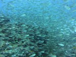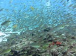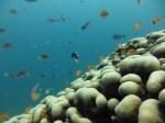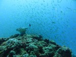 The current at Dessho, another site accessed by boat, is also strong, requiring a very careful descent down an anchor line to 9m where the dive begins with two huge rock formations. Taking a right turn and staying close to these rocks we soon swam over a bed of even more rocks down to about 21m where the current weakens. Here the rocks and boulders are at a drop off and seem to form a huge structure, prolific with numerous species such as gobies, Moorish Idols, redfin fusiliers, redtoothed triggerfish, trumpet fish and bluespine unicorn fish. The area is also encrusted with a few sponges and sea squirts, forming a haven for friendly fishes and a dream studio for the adventurous photographer as huge coral formations create a spectacular backdrop for underwater photography. Despite the current the beauty of diving at Dessho comes in the opportunities for photography and reef viewing as well as the fact that the water is extremely clear.