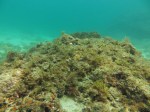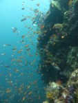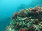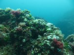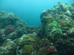 Uonone: A short boat ride from one of the local ports takes you beyond Nakanoura Beach and into the open ocean to Uonone. We did a backward roll into the water and descended to around 8-9m. The rocks are huge, almost no sand exists and the current is mild. The cascading rocks caked in seaweed form gradual walls all around and run down vertically to about 20m but 13-14m is the best area in terms of visibility and marine life. Sea anemones, home to the clown fish, flourish in a range of colours and as we swam over these at 14m the water became immensely clear. We then encountered schools of yellowstriped butterfish and largescale blackfish for whom the rocks and seaweed are a nice little refuge while damsel and angel fish appear to thrive as well, pecking nutrients out of the water and swirling here and there. As the sun shines over the rocks the colours of the soft coral and seaweed are particularly striking. Having a small light on this dive is highly recommended as plenty of discoveries like crabs, nudibranchs and tiny shrimp also await.