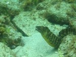 Nakanoura Beach: This is one of Shikinejima’s top snorkeling spots. Diving at this small sheltered bay is extremely easy as you mingle among the snorkelers and only go to around 9m. In the distance is a fixed net underwater, sheltering the bay from the open ocean so the water is calm and clear. Standing on the sand, we put on our fins and masks and descended to 5-6m, swimming in a straight line over a bed of white sand and medium-sized rocks. This dive is not so tropical and instead offers a range of seaweed and green plants which are a haven for sea anemones, sea slugs, small crabs and shrimps. Swimming over to a more large rock, I found a group of wrasses ducking and weaving together as I approached. Closer to the rock, an eel, wary of my large form, slowly swam out as I circled around. As I waited patiently, it would turn to face me and see if I was still watching before moving back into its home and out of sight.