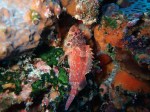 Sanju: Healthy coral of every shape and colour thrive along the walls where the ocean floor drops into oblivion, while schools of knife fish, angelfish and Centropyge interrupta (Japanese angelfish) feed off the area. Famed for its resident white-saddle goatfish, spotted tail mornings and golden-striped groupers, Sanju has much to offer despite its relatively standard and ordinary appearance as the dive begins at around 5m. Sanju is also a great place for those who like endless scores of nudibranchs and decorator crabs scuttling about their business, and adding to the site is a comprehensive collection of sponges and soft corals, providing fantastic photo opportunities no matter which area you decide to explore. Streaks of sunlight also glisten through the 12-15m area, making the site all the more attractive. Dragon morays call Sanju home, neon damselfish cruise the sides of the many rocks, and other areas are frequented by thread-sail filefish. Meanwhile, like an oasis of life, a sac anemone hosted a couple of anemone fish and clownfish.