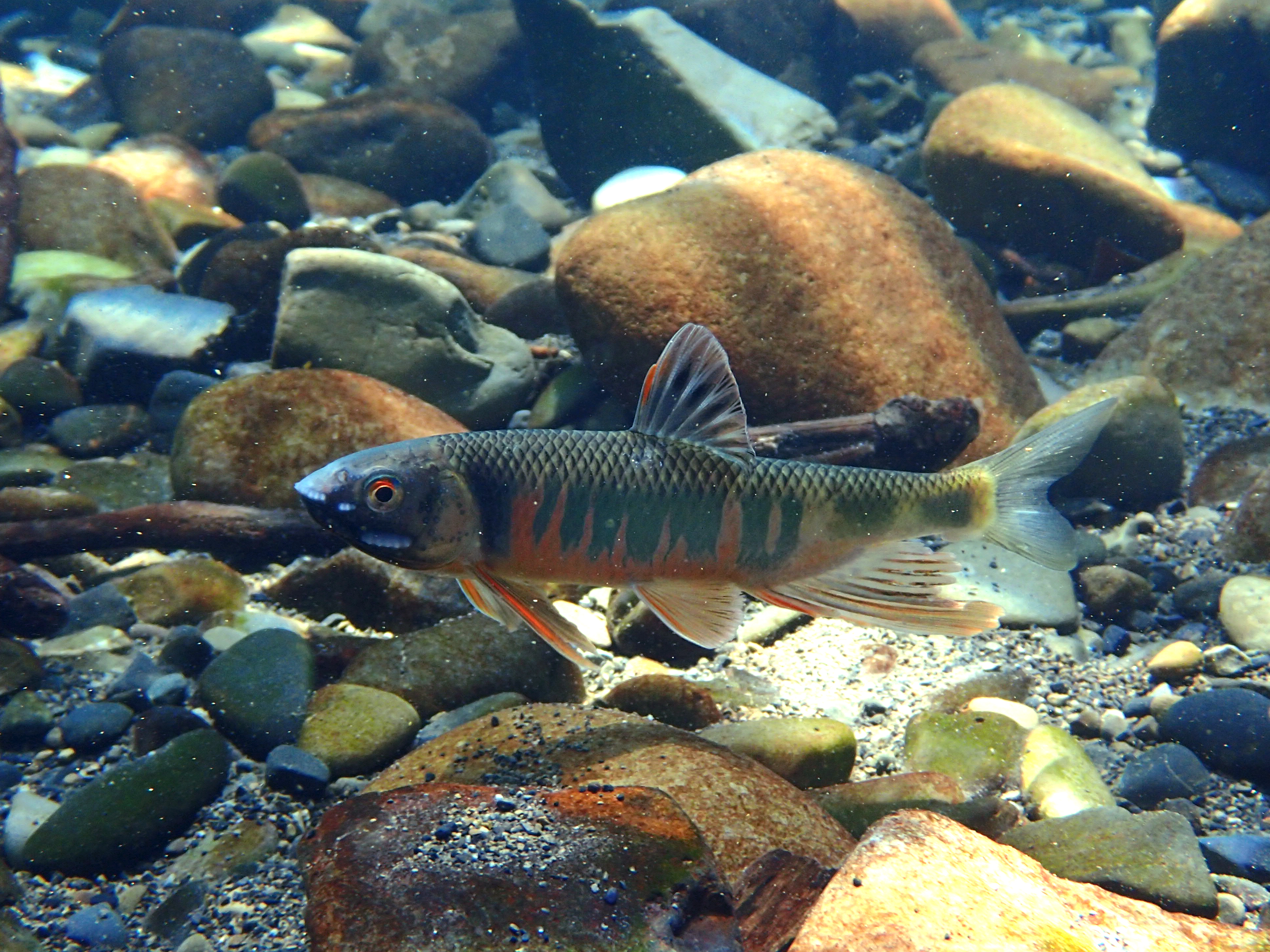 The rocks are interesting themselves ( abstract shapes , textures and colors ) , but , the Pale Chub is a new one for me ; enjoyed seeing the markings and color combinations . The dorsal fin had me thinking for a while , the shape was in my mind but I couldn’t place it , “sailboat centerboards ” !! , on the bottom , half and full down. …….. About the Chubs markings ; there is an artist in London by the name of Emmylou Artist that incorporates a pattern in her seascapes much like the Pale Chubs flanks . …….On the technical side : I am wondering why you used 30 bar of air, more, on your first dive , than on your second dive ( same depth same temperature ) ? Does excitement about a dive relate to oxygen consumption or just moving around more ? …… Your crab photo brings to mind the ” Ghost Crab ” , p.14 , “The Edge Of The Sea ” by Carson . Thanks for sharing your photos . ( T . J . 9-13-15 )