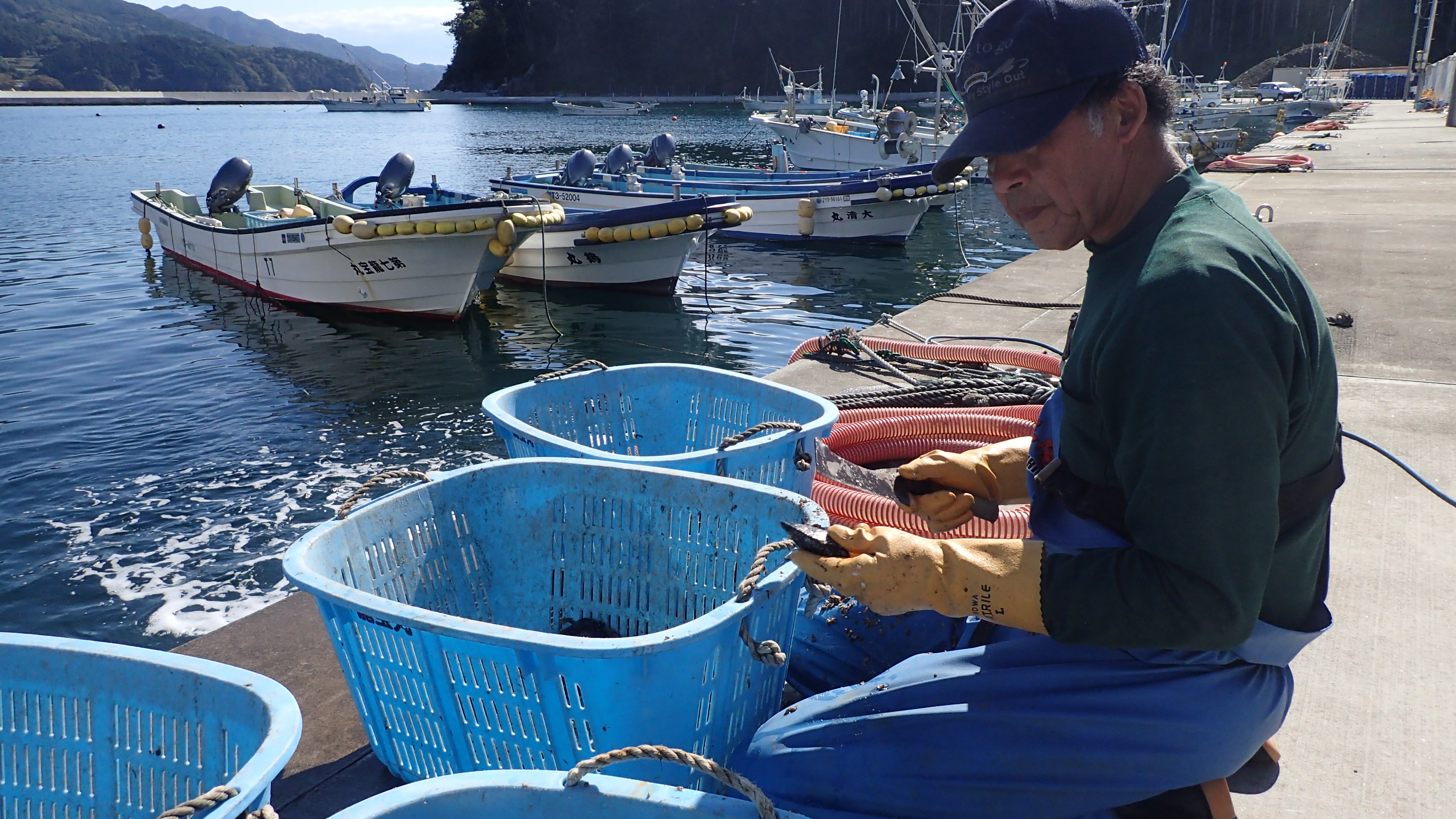 It’s 1AM, and a group of fishermen prepare to go scallop farming off Koishihama Bay near Ofunato in Tohoku’s Iwate Prefecture.  They spend about 3 hours at sea and return to the port by 4AM, scrubbing and cleaning the scallops, so that by 6AM the shellfish are packed up and ready to be transported across Japan for sale.