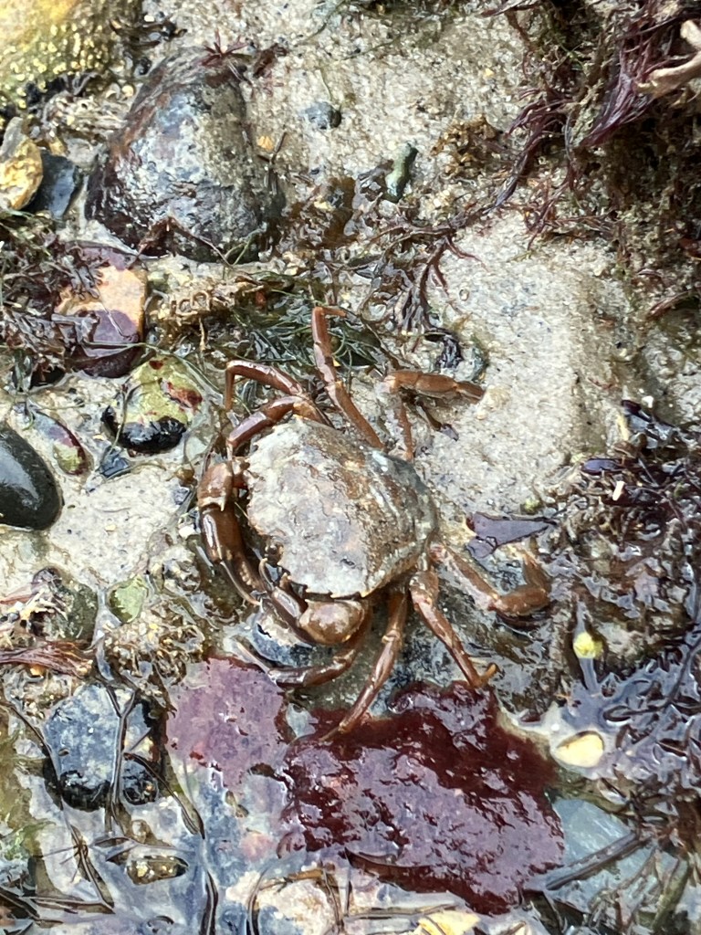 As the survey continued, the findings got more and more exciting. A hooded prawn, brittle star, scallop, hairy hermit crab…all new finds were photographed and shared with as many volunteers as possible. Excited voices overlapped as different seaweeds were compared, crabs and shellfish identified, and unexpected finds celebrated. There was a really nice sense of shared discovery throughout, moments of joy, curiosity, collaboration, and the thrill of turning over a rock to reveal something new.